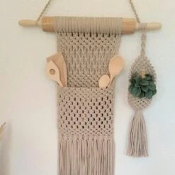 En el kit encontrarás todos los materiales necesarios para darle forma. El organizador destaca por su robustez gracias a los nudos de macramé escogidos en el patrón y al hilo Cordino incluido en el kit, lo que garantiza que tus utensilios se mantendrán en su lugar de manera segura.