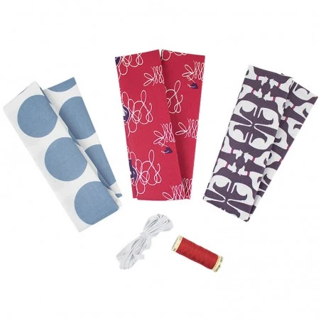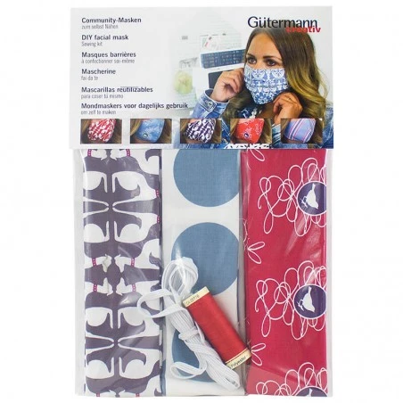 Gütermann presenta el kit para hacer 3 mascarillas reutilizables. Gracias a este completo kit, tendrás la oportunidad de confeccionar fácilmente 3 mascarillas lavables y reutilizables para ti o para tus seres queridos. Además de las telas, el kit incluye el hilo de coser de color rojo y goma elástica suficiente para las 3 mascarillas.