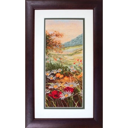 El diseño te permite bordar un paisaje donde podemos observar flores, plantas y montañas en el fondo. Para poder realizarlo fácilmente, el kit incluye las explicaciones en 9 idiomas distintos: español, inglés, francés, alemán, holandés, italiano, portugués, turco y húngaro.