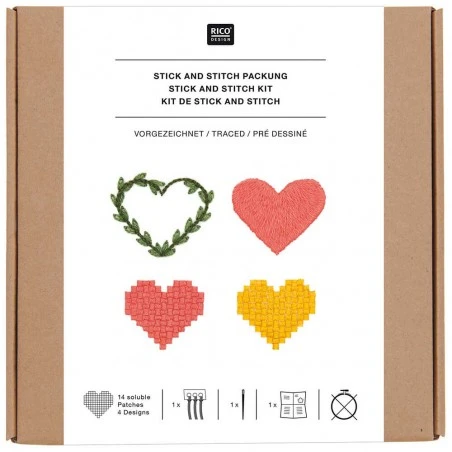 Características del Kit Stick & Stitch Pixel Art – Corazones – Rico Design:
