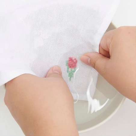 – Flores, frutas, animales y más. - Coloca la tela soluble con el diseño sobre tu prenda y borda. Retira la tela soluble mojando con agua y ya tendrás listo tu parche en la prenda escogida.