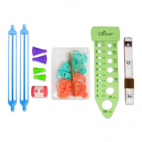 El juego de accesorios para tejer de Clover contiene: