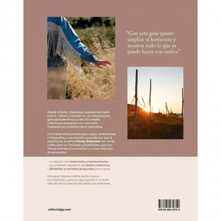 Descubre un mundo de creatividad en Macramé: accesorios. Una guía para crear piezas únicas para ti y para tu hogar. Este libro es tu guía esencial para crear piezas únicas utilizando la técnica del macramé. Desde elegantes collares y diademas hasta bolsos, cojines y maceteros, este libro explica como trabajar 20 proyectos hermosos, todos inspirados en la belleza de la naturaleza.