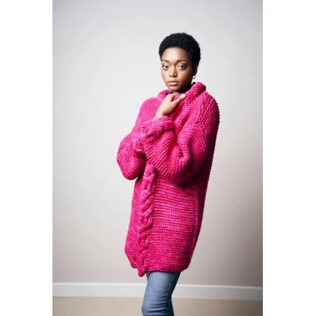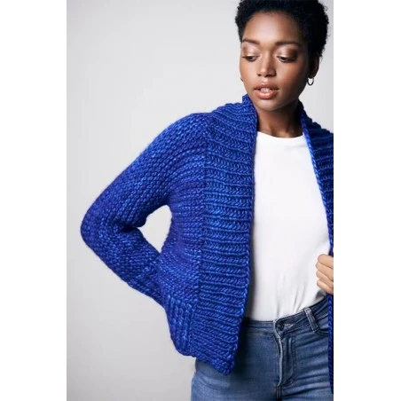 Los 16 patrones incluidos ofrecen una variedad de opciones, desde cárdigans y jerséis hasta bufandas, gorros y manoplas, todos diseñados para aprovechar al máximo la textura súper voluminosa y esponjosa de la lana Rasta.