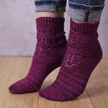 Cada patrón se explica para tejer con Malabrigo Ultimate Socks, una lana extrasuave de primera calidad hecha al 100% con lana merino Superwash de Uruguay, reforzada con nailon para brindar durabilidad y resistencia a tus calcetines. La suavidad y calidez de esta lana se combinan con una paleta de colores amplia y cautivadora, ofreciendo infinitas posibilidades para personalizar tu proyecto y crear piezas únicas.