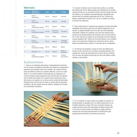 Deberás utilizar caña de cestería para realizar los proyectos. El libro explica detalladamente cómo trabajarla, manipularla y almacenarla. Además, aprenderás a personalizar tus cestos con adornos, variando colores y formas según tu creatividad.