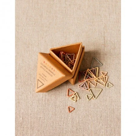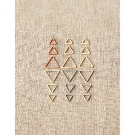 Los Marcadores de Punto con forma de Triángulo – CocoKnit se presentan en un pack de 54 unidades. Son perfectos para colocar en tus agujas de tricot, donde te será muy sencillo colocar y retirar gracias a la forma triangular de los marcadores.