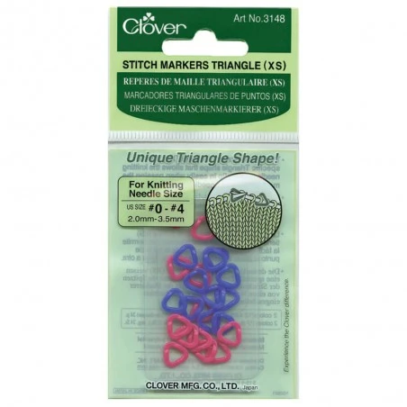 Los marcadores de punto de forma triangular Clover son perfectos para hacer marcaciones en tus trabajos de punto. Resultan prácticos para recordar donde debemos cambiar de vuelta, de punto, hacer un aumento, una disminución y mucho más.
