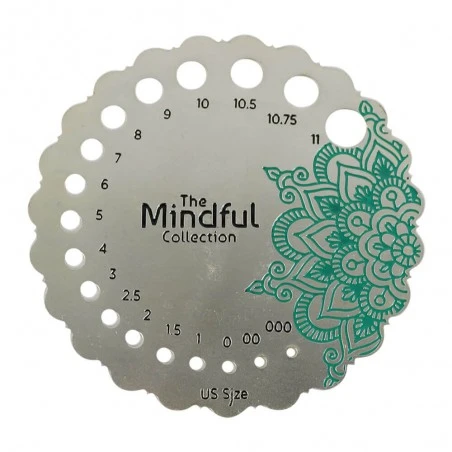 El Medidor de Agujas Plateado – The Mindful Collection de KnitPro se caracteriza por la elegancia del diseño de la colección Mindful. Presenta forma de flor mandala y está hecho de metal chapado en plata de ley.