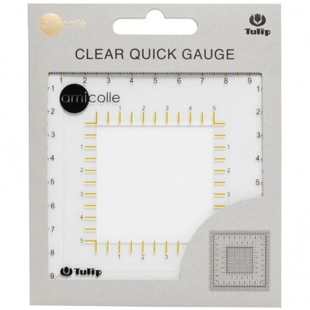 Con el Medidor de puntos de Tulip puedes medir el número de puntadas de tu labor fácil y rápidamente. Es una lámina de PVC transparente de 10 cm con marcas amarillas, perfectas para verlas sobre labores oscuras.