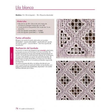 El libro Mi cuaderno de bordado 3 escrito por la diseñadora y bordadora belga Marie Suárez está especializado en bordado Hardanger. Este tipo de bordado noruego se caracteriza por los calados y la geometría de sus diseños. Gracias a este libro podrás aprender a realizar elegantes y coloridos bordados.