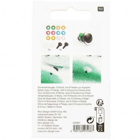 Características de los Ojos para Amigurumis con Purpurina de Rico Design:
