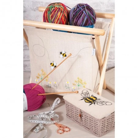 El organizador para labores Linen Bee Appliqué de HobbyGift es una cesta de tamaño amplio que te permite ordenar accesorios y materiales para tejer en su interior. Dispone de un soporte de madera que te permite abrir y cerrar el organizador fácilmente, por lo que podrás ordenarlo en cualquier rincón cuando no se encuentre en uso.