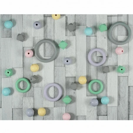 El Pack de 32 Abalorios de Madera de Trimits incluye un surtido de cuentas y anillas de madera en tonos pastel, perfectas para utilizar en proyectos de macramé u otras manualidades.