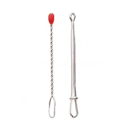 El pasacintas con bola ofrece forma rizada y una cabeza en un extremo. Es perfecto para cordones finos y elásticos. Enhebra tu material en la punta y átalo a ella. Utiliza la cabeza para pasar el material por el interior de tu dobladillo.