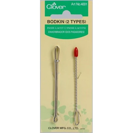 El juego de pasacintas Clover incluye 2 tipos de pasacintas metálicos diferentes perfectos para pasar cordones, elásticos, cintas y otros materiales a través de dobladillos, costuras o jaretas.