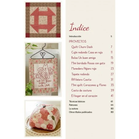 - Incluye las técnicas básicas sobre bordado, ribete, puntos empleados y acabado quilt.