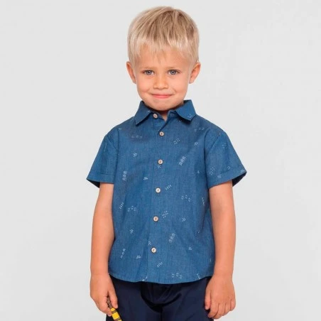 Aprenderás a confeccionar esta camisa de manga corta con cuello italiano perfecta para vestir a los más pequeños.