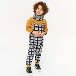 El mono cuenta con bolsillos en la parte delantera del pantalón, los puños de los tobillos ajustados y tirantes que se abotonan en la parte lumbar.