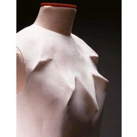 - Busto rebajado con dos pliegues curvos verticales en la parte delantera