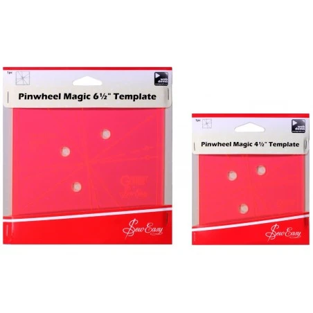 Plantilla Pinwheel Magic de Sew Easy para tus trabajos de patchwork y quilting para realizar piezas con forma de molino de viento. Con tan sólo 1 sola plantilla puedes realizar hasta 3 modelos diferentes.