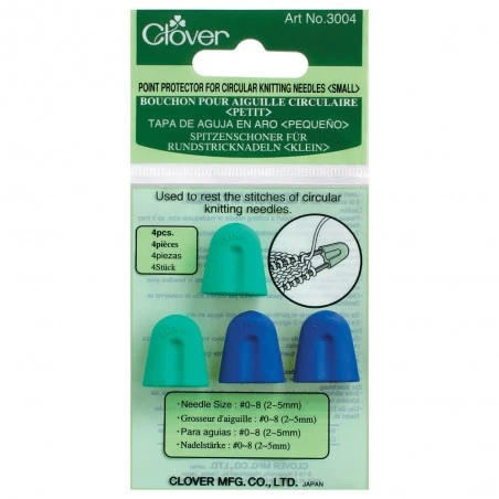 Los protectores para agujas circulares de Clover son unos capuchones con doble perforado para que puedas proteger las dos puntas de tus agujas circulares utilizando solo una unidad.