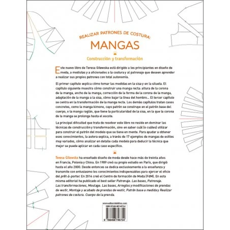 Realizar patrones de Costura: Mangas es un libro escrito por Teresa Gilewska, una profesora de diseño de moda con más de 30 años de experiencia en el sector. Se trata de un ejemplar perfecto para iniciarse en el patronaje o para especializarse en las técnicas para realizar esta parte de la prenda.