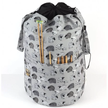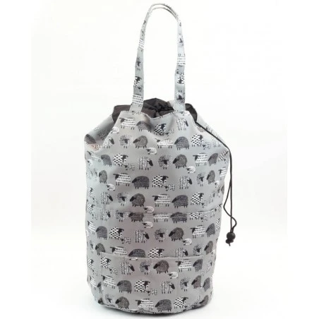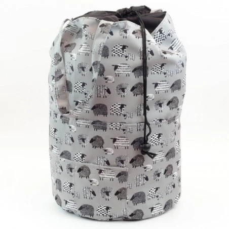 Para que puedas transportar el bolso a cualquier lugar que desees se incluyen dos asas. El saco está hecho de tela estampada con motivos de ovejas. ¡Elige tu color favorito entre gris o rosa!