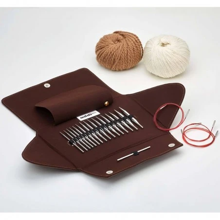 - 5 cables intercambiables addi rojos: 40 cm – 50 cm – 60 cm – 80 cm – 100 cm
