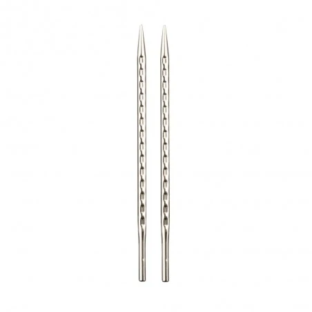 El Set de Agujas Circulares Intercambiables addiClick Novel Lace Long de addi presenta 8 pares de agujas ergonómicas addiNovel de 3,5 a 8,0 mm, con bordes rectangulares redondeados y una superficie texturizada en espiral que proporciona un suave masaje a tus manos mientras tejes.