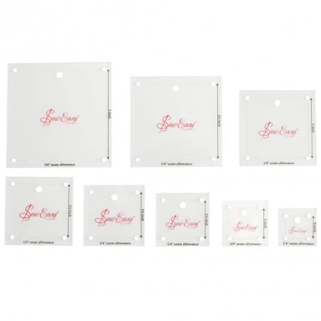El Set de 8 Plantillas Cuadradas para Patchwork – Sew Easy es un conjunto versátil y práctico de mini plantillas, diseñado para facilitar tus trabajos de quilting y patchwork.