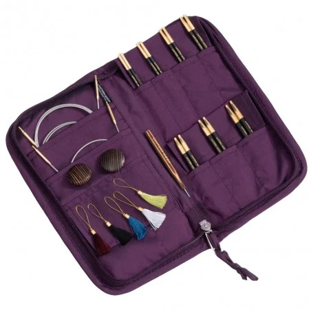 Para mayor comodidad, el set incluye tapones de madera para los extremos, que puedes utilizar para guardar los puntos en el interior del cable cuando no estén en uso. También se incluyen dos herramientas de ajuste que facilitan el apriete de las puntas de las agujas y cinco marcadores de punto con borlas de colores para ayudarte a realizar un seguimiento de tus patrones y diseños.