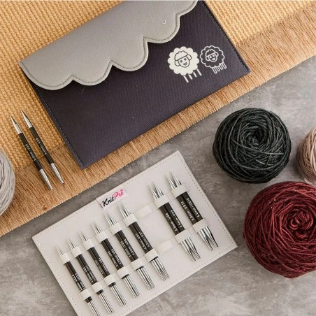El Set de Agujas Circulares Intercambiables 10 cm Deluxe Karbonz de KnitPro ofrece comodidad y precisión. Con 9 pares de agujas circulares intercambiables fabricadas en fibra de carbono de alta resistencia, este juego combina ligereza y durabilidad, cubriendo tamaños de 3 a 6 mm para adaptarse a distintos proyectos.