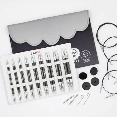El set incluye cables que mantienen su forma y no causan problemas durante el proceso de tejido. Todo el conjunto se organiza en un elegante estuche de tela gris, perfecto para las tejedoras en movimiento. ¡Disfruta de una experiencia de tejido superior con Karbonz Deluxe!