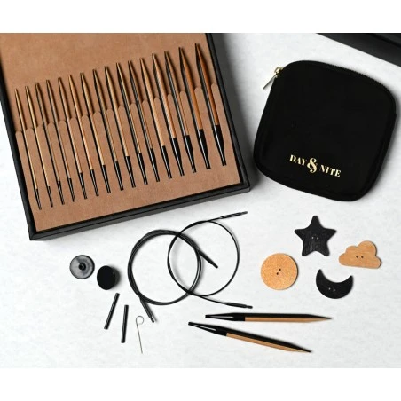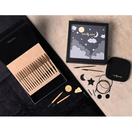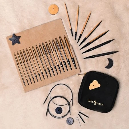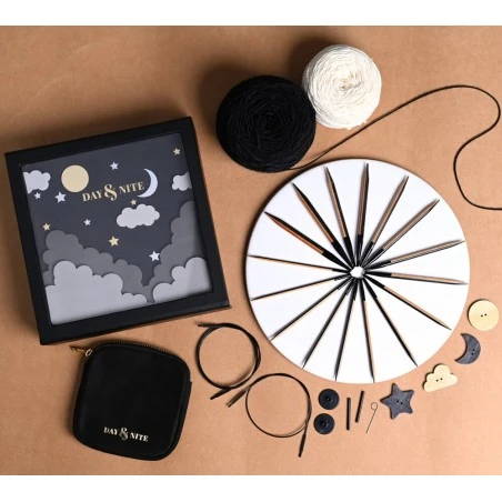 El Set de Agujas Circulares Intercambiables – Day & Nite de KnitPro es un set de Edición Limitada con un diseño inspirado en el día y la noche. Las puntas de aguja son brillantes como el sol del día por un lado, y negras y oscuras como la noche por el otro. ¡Te encantarán!