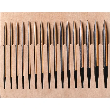 - 8 pares de agujas circulares intercambiables de 13 cm de longitud en los grosores: