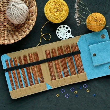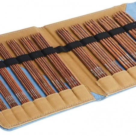 – 12 juegos de agujas de doble punta en los grosores: 2 mm, 2,25 mm, 2,5 mm, 2,75 mm, 3 mm, 3,25 mm, 3,5 mm, 3,75 mm, 4 mm, 4,5 mm, 5 mm y 5,5 mm