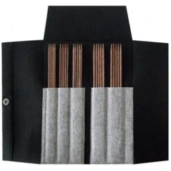 Pony presenta el set de agujas de doble punta Perfect con estuche de fieltro. Se trata de un set perfecto para tejer labores redondas como cuellos, mangas, gorros y otras labores de ese tipo. Las agujas son de madera y tienen una longitud de 15 cm. El set incluye 5 packs de agujas de diferentes grosores.