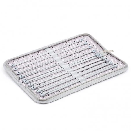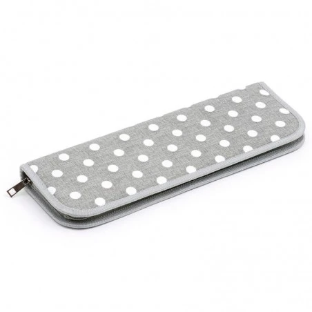 El Set de Agujas de Tricot de Polka Dot Grey es un bonito estuche acolchado y rígido para almacenar y transportar agujas de punto.