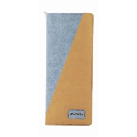 El estuche está hecho de cuero vegano de color azul denim y marrón y se cierra con cremallera. ¡Tus agujas estarán siempre a buen recaudo!