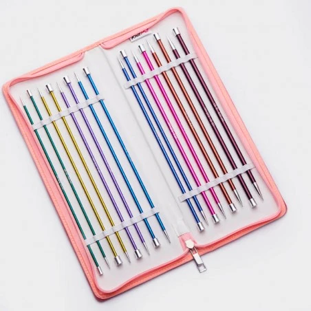 El Set de Agujas de Tricotar Zing de KnitPro está disponible en 4 opciones de longitud diferentes. Cada juego ofrece una completa gama de 8 pares de agujas de punto en los tamaños más utilizados, que van desde 2,5 mm hasta 6 mm. Las agujas están fabricadas en aluminio ligero de alta calidad, lo que permite que tus puntos se deslicen suavemente, ofreciendo una experiencia de tejer sin esfuerzo.