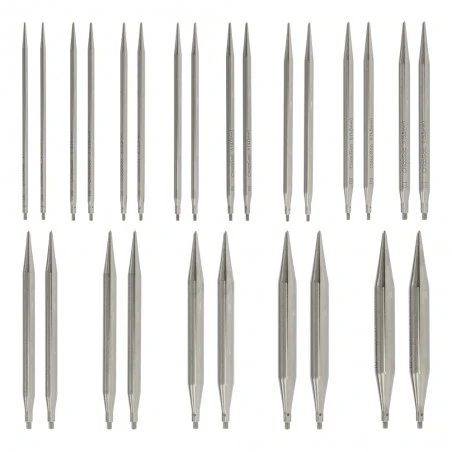 - 13 pares de agujas circulares intercambiables con una longitud de 10 centímetros: