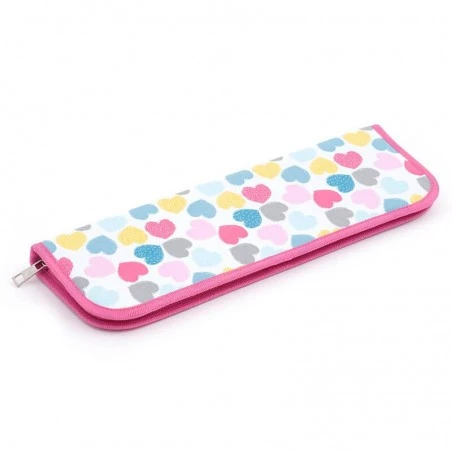 El Set de agujas-Love se caracteriza por un estampado de corazones en muchos colores llamativos y alegres. Este estuche es perfecto para tener siempre ordenadas tus agujas de punto. También estarán seguras para su transporte gracias a las gomas elásticas que forman 8 espacios para su colocación.