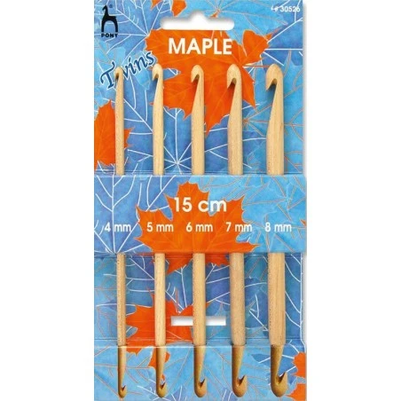Pony presenta este fantástico set de ganchillos tunecinos 2 puntas Maple. Son 5 ganchillos largos, de unos 15 cm, y varios grosores. Están hechos de madera lisa y pulida, así que pesan muy poco y te permitirán tejer durante horas sin que se te cansen las manos.
