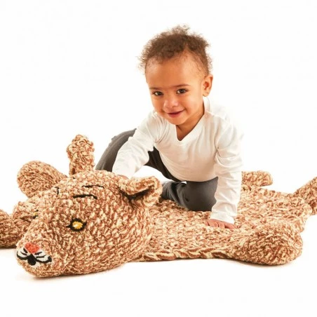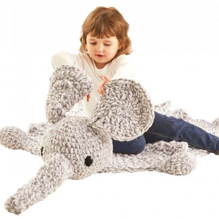 El libro DMC Super Happy Chenille Nº 1 – Safari presenta una colección de 6 modelos para tejer a ganchillo peluches gigantes con forma de alfombra. ¡Serán perfectas para que niños y bebés jueguen sobre ellas! Encontrarás diferentes formas como un elefante, un león, un cerdito o un oso, entre las seis ideas disponibles.