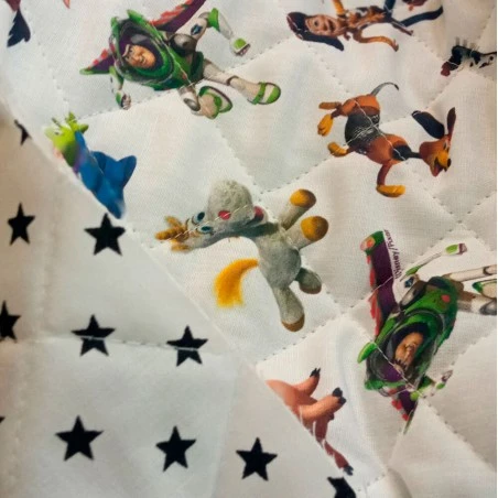 La Tela Acolchada – Disney – Toy Story presenta un estampado de los diferentes personajes de la película animada Toy Story. Encontrarás a Buzz Lightyear, Woody, Marcianos, Slinky, Hamm y otros divertidos personajes.