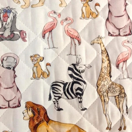 La Tela Acolchada – Hakuna Matata – El Rey León es un tejido perfecto para la confección de colchas, edredones y ropa de cama abrigada. El tejido está formado por 3 capas: la capa exterior, la capa interna y un acolchado esponjoso en el centro.