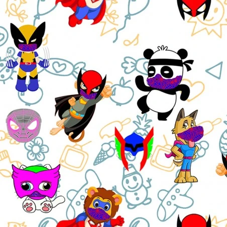 - Diseño: Estampado de superhéroes animales sobre fondo amarillo o blanco a elegir.