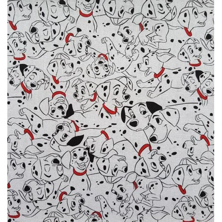 Sin duda, lo mejor de esta tela es su diseño. Presenta un estampado de los dálmatas de la famosa película de Disney “101 Dálmatas”, sobre un fondo blanco. Los dálmatas también son blancos, con machas negras y collares de color rojo, que le dan un toque de color a esta tela tan divertida.