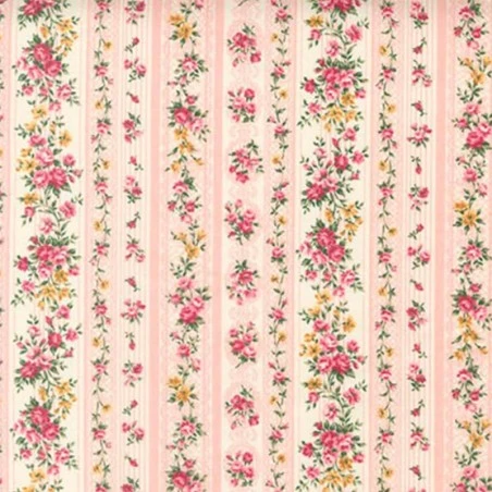 Con un peso aproximado de 100 gramos por metro cuadrado, esta tela combina calidad y durabilidad. Inspira tu creatividad y dale vida a tus proyectos con la elegancia clásica de Flowers and Stripes – Sevenberry: Petite Victoriana.